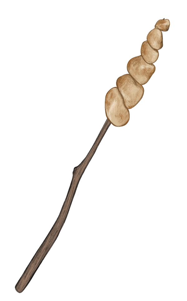 Snurra degen runt en pinne (eller runt en grillkorv om du vill). En bra pinne är stadig och har ingen bark kvar.
